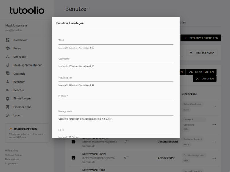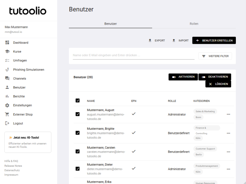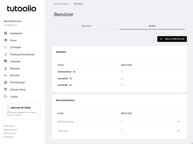 - Klares Rollenkonzept: Weisen Sie spezifische Rechte für Administratoren, Tutoren, Auswerter oder externe Prüfer zu.
