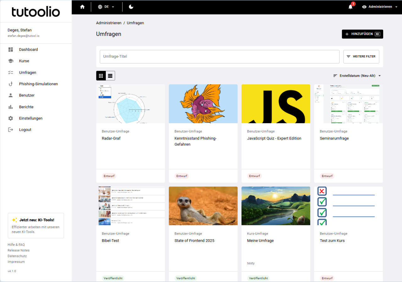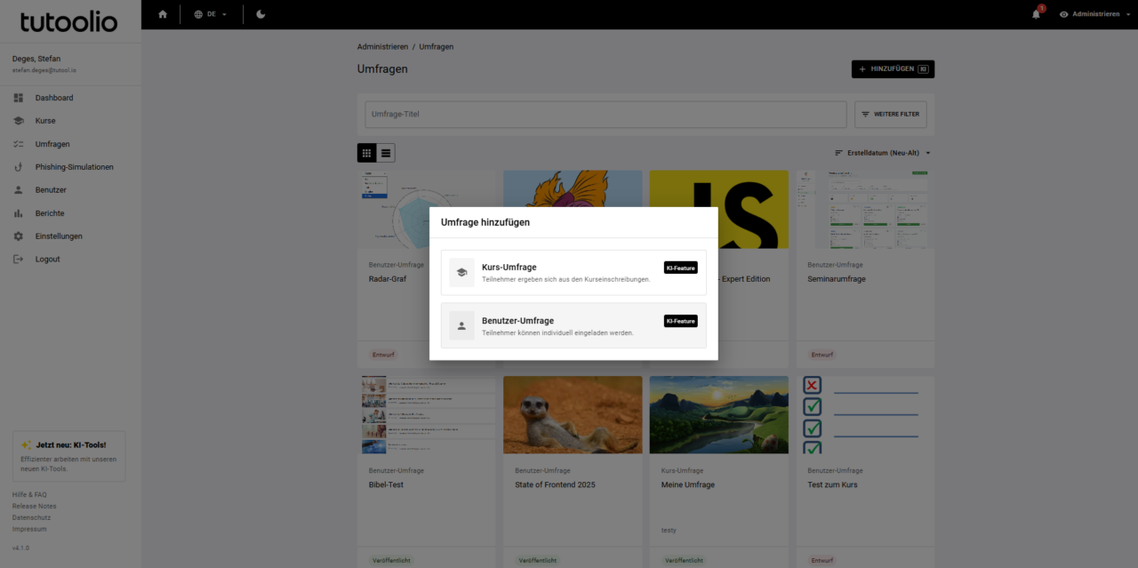 2. Zentrale Erstellung von Umfragen und Wissenschecks
