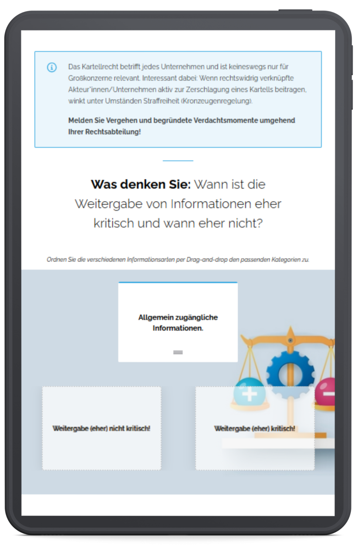 Ihre Mitarbeitenden lernen die zentralen Prinzipien der Compliance kennen.