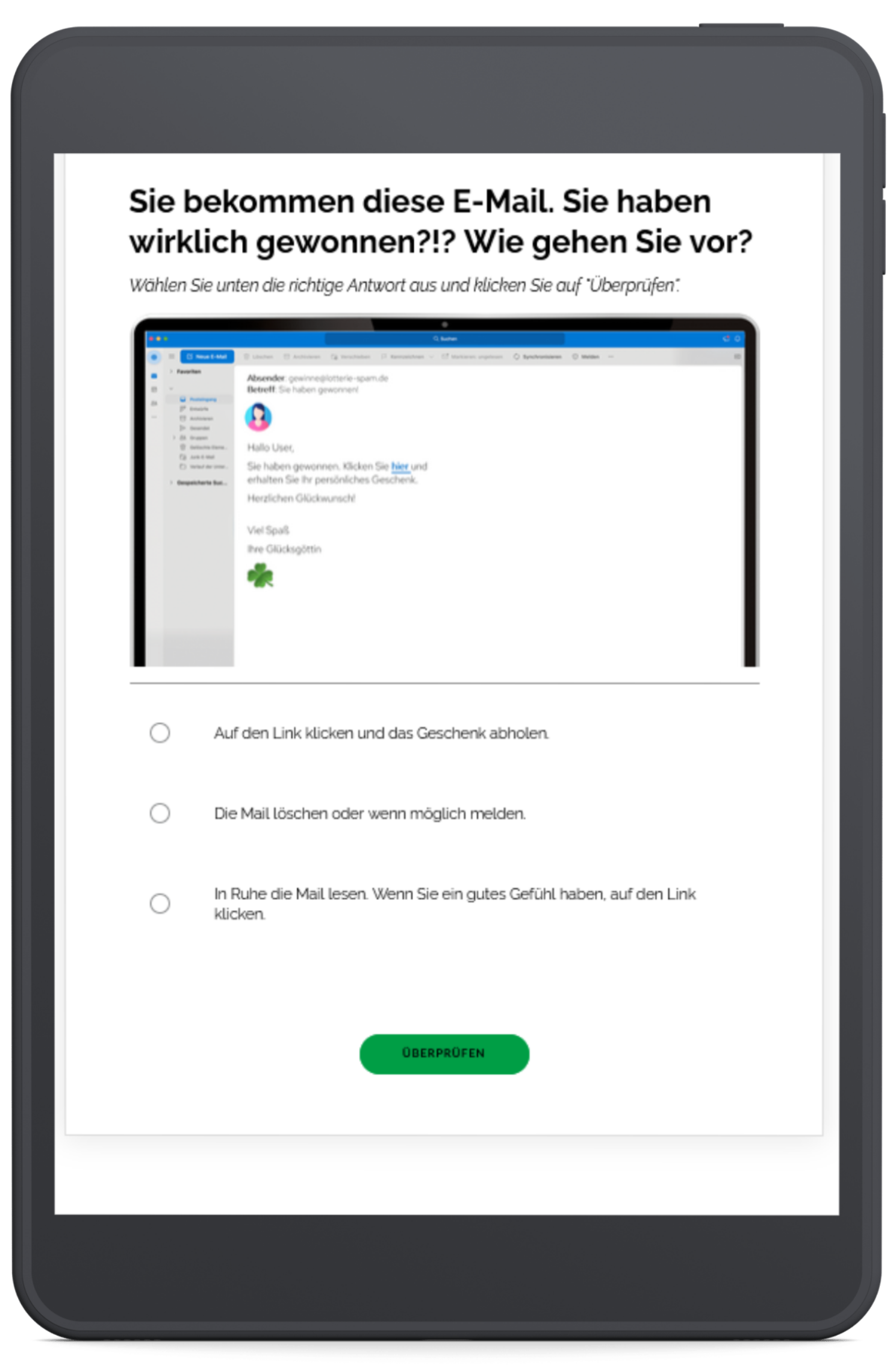 Treten Sie gegen den Cyberkriminellen Fritz an und ordnen alle E-Mails richtig zu, um zu gewinnen.